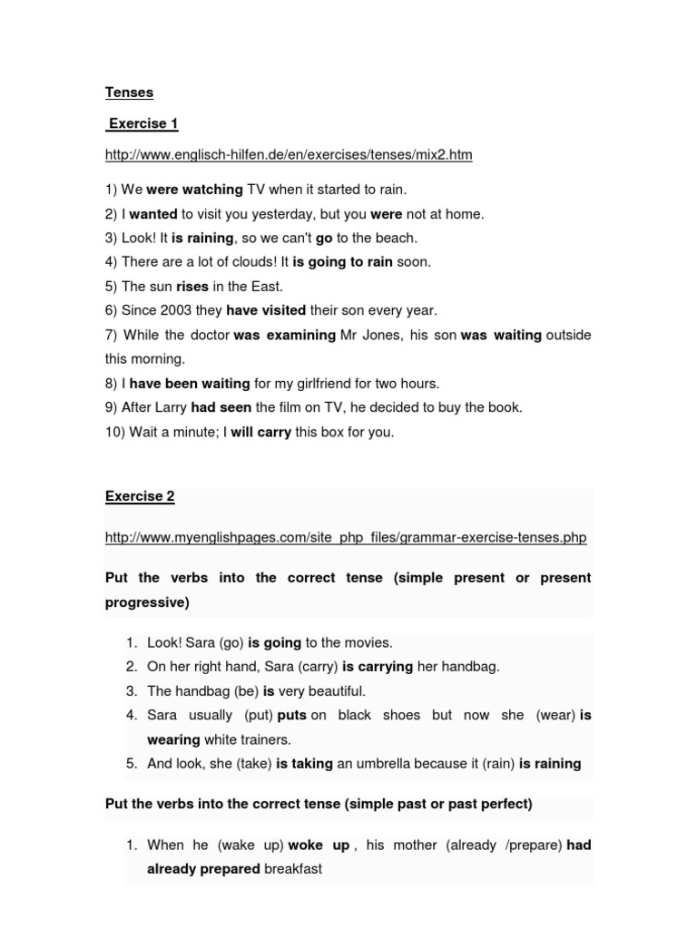 Test Tenses En Answers Englisch Hilfen De Learning English Online English Tenses Test Answers A Put In The Verbs In Brackets Into The Gaps 1 I Course Hero